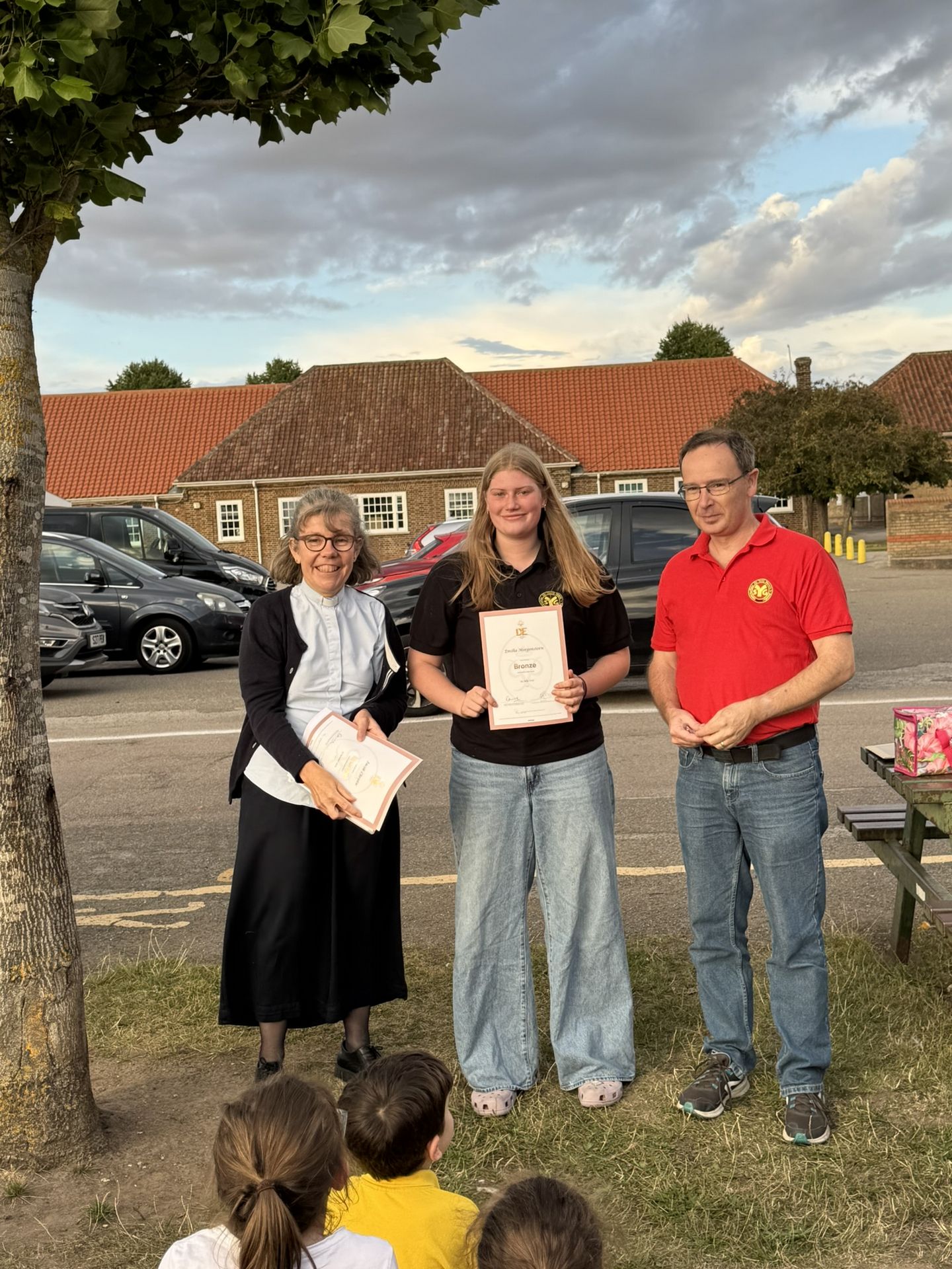 Millie and Jacob receiving their Bronze DofE awards and Emily receiving her Silver DofE award and our annual Jimmy's shield award.